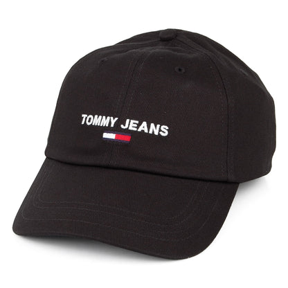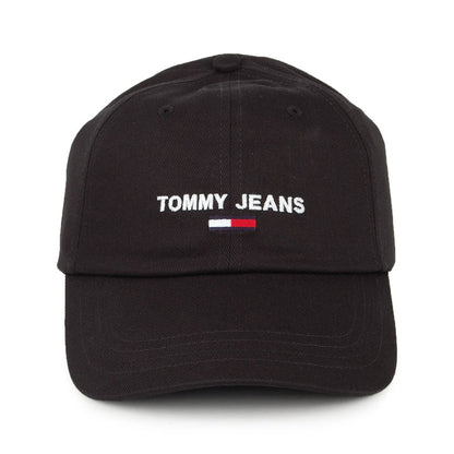 This is the Tommy Hilfiger TJM Sport Baseball Cap in black. This 100% cotton cap features 'Tommy Jeans' embroidered on the front of the cap. There are eyelets for ventilation and an adjustable strap at the back of the cap for a perfect fit.