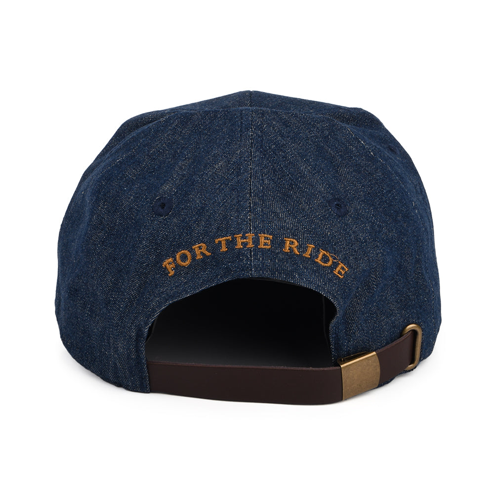 The Triumph Forecourt Baseball Cap is made of 100% cotton denim. The cap features Triumph Motorcycles embroidered on the front while the back has "For the Ride" embroidered. There is an adjustable strap to ensure a perfect fit.