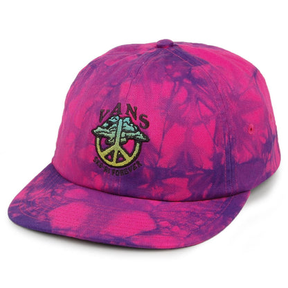 This is the Vans SK8-Hi Forever Jockey Baseball Cap in fuchsia. This classic baseball cap style has a unique tie dye print. The Vans SK8-Hi Forever logo is embroidered on the front and there is an adjustable strap at the back which allows this hat to fit most sizes.