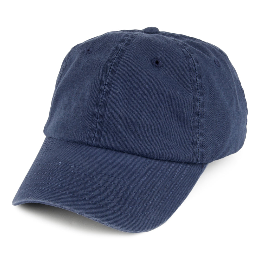 Here is the Vintage Cotton Baseball Cap in navy blue. It is a great basic unstructured ball cap made from 100% cotton. This six panel baseball cap features eyelets on each panel to keep you ventilated and cool. The adjustable strap at the back makes sizing simple and comfortable. The hat comes with a pre-curved brim so it is ready to wear right out of the box.